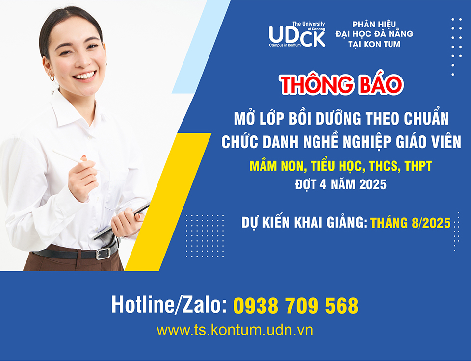 Phân hiệu Đại học Đà Nẵng tại Kon Tum phối hợp với Trường Đại học Quy Nhơn mở lớp Bồi dưỡng theo chuẩn chức danh nghề nghiệp cho giáo viên mầm non, tiểu học, THCS, THPT đợt 5 năm 2025.