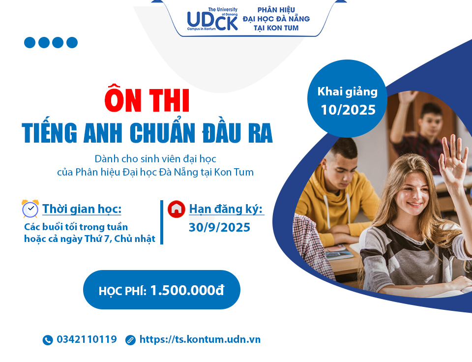 Phân hiệu Đại học Đà Nẵng tại Kon Tum (Phân hiệu) thông báo tổ chức mở lớp ôn thi tiếng Anh chuẩn đầu ra cho sinh viên đại học của Phân hiệu đợt 2 năm 2025.