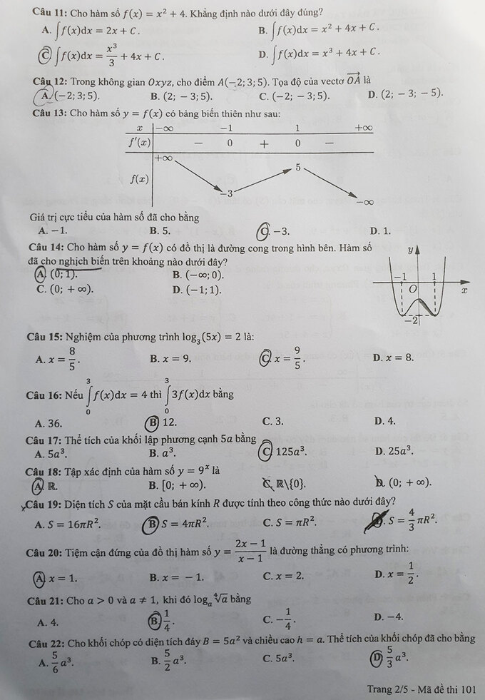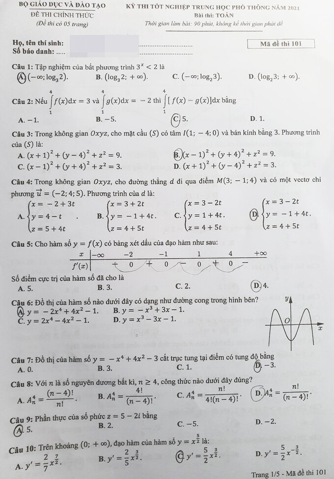 Gợi ý đáp án môn Toán kỳ thi Tốt nghiệp THPT 2021 (Tất cả các mã đề - Tiếp tục cập nhật):