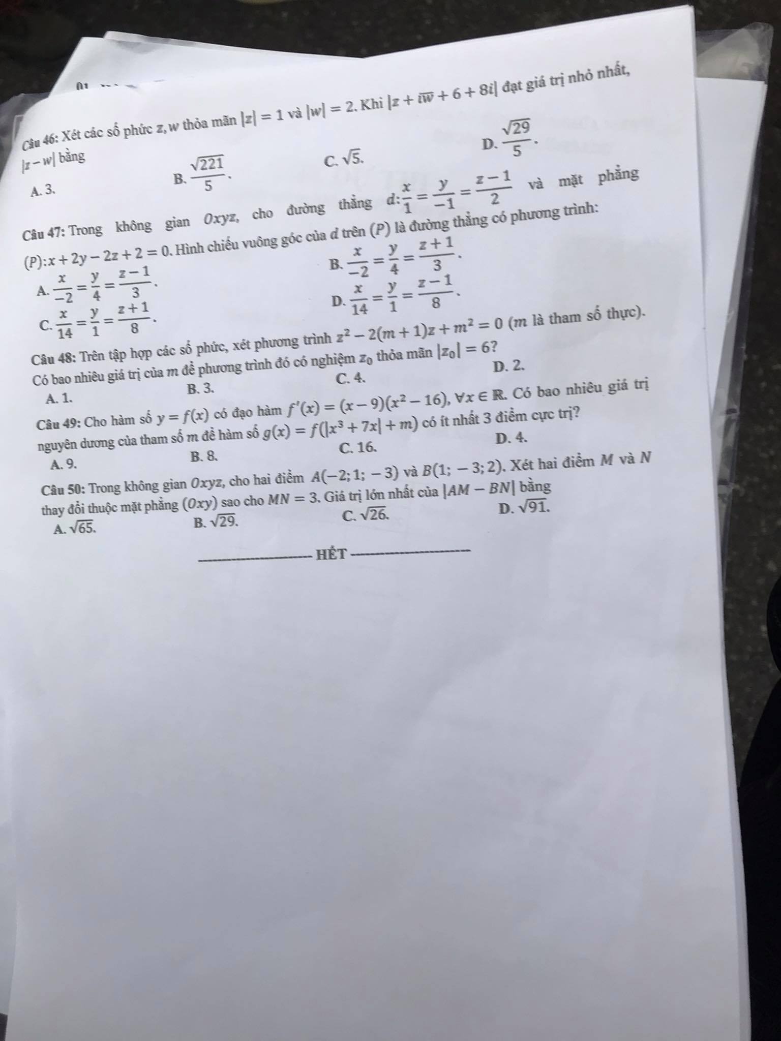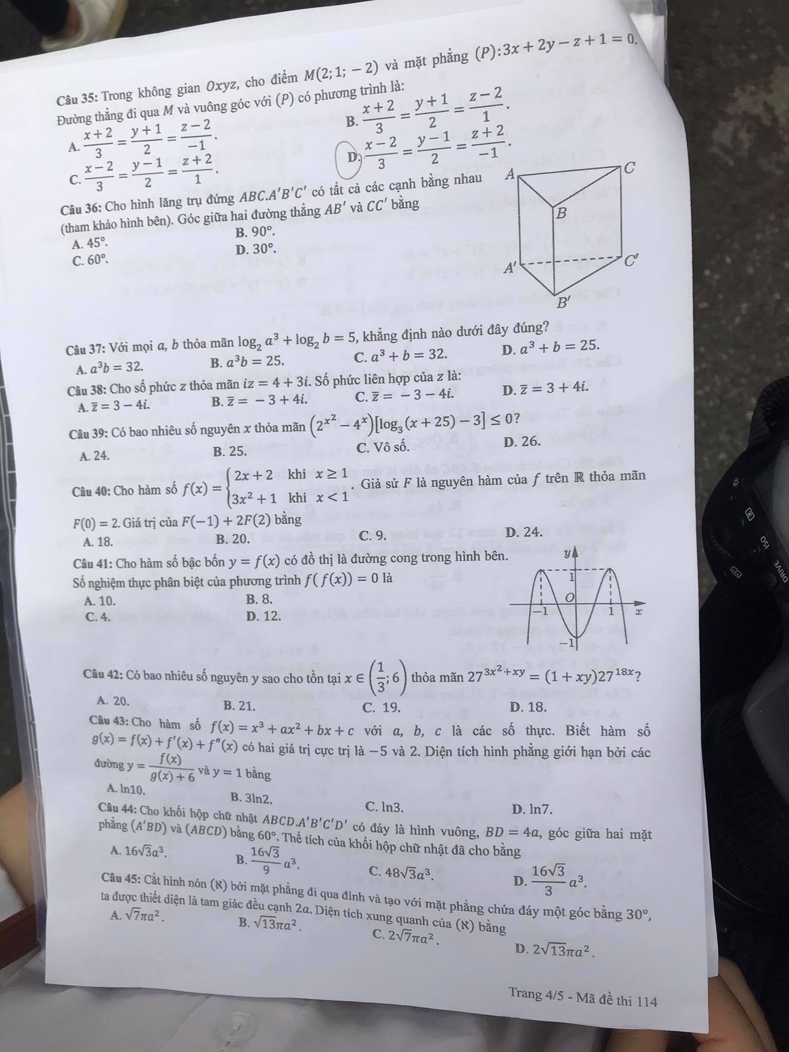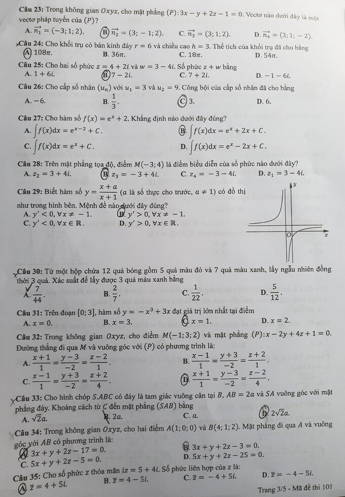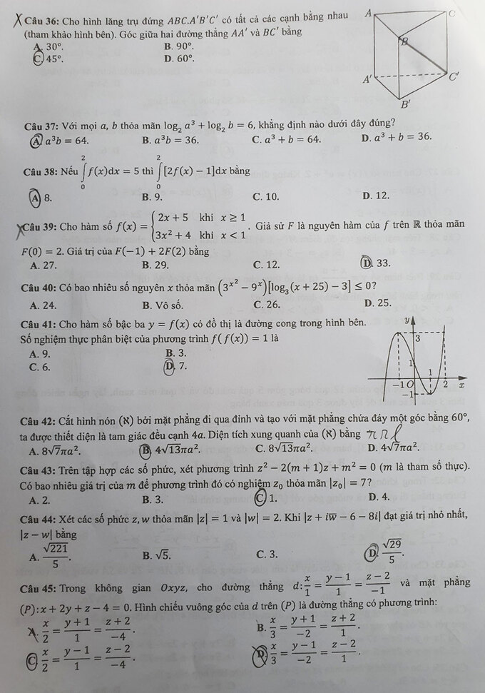Đề thi môn Toán kỳ thi Tốt nghiệp THPT 2021 như sau: (Tiếp tục cập nhật)