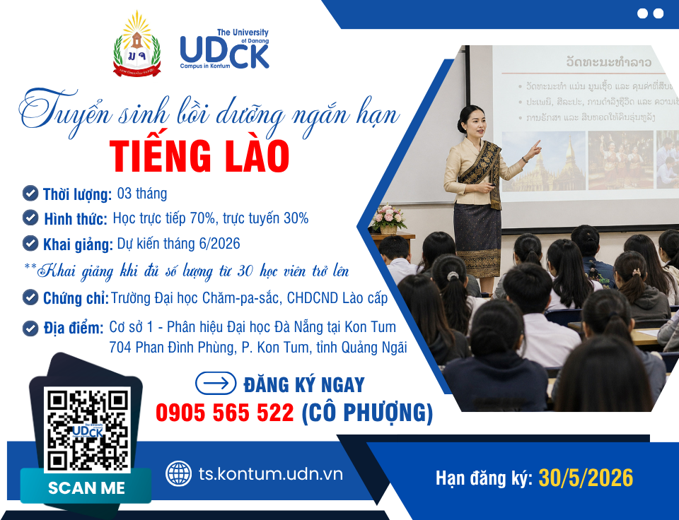 Chi tiếtPhân hiệu Đại học Đà Nẵng tại Kon Tum thông báo tuyển sinh khoá bồi dưỡng tiếng Lào ngắn hạn 03 tháng