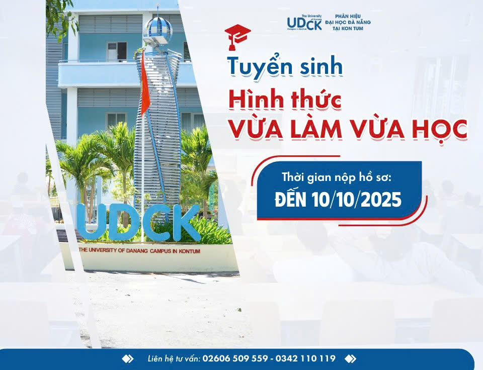 Chi tiếtPhân hiệu Đại học Đà Nẵng tại Kon Tum công bố thông tin tuyển sinh năm 2025 - Hình thức đào tạo: Vừa làm vừa học