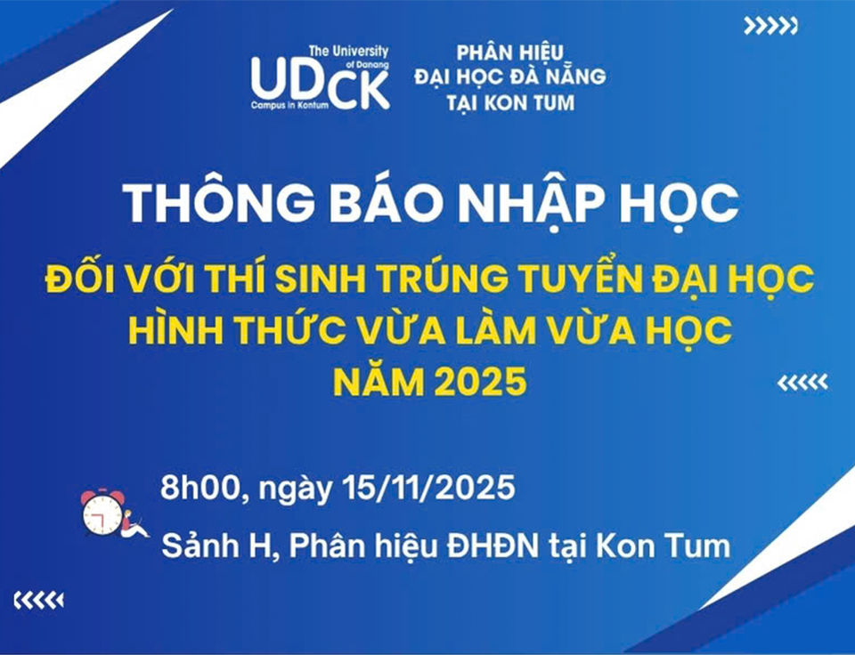 Phân hiệu đại học Đà Nẵng tại Kon Tum thông báo nhập học đối với thí sinh trúng tuyển đại học hình thức đào tạo vừa làm vừa học tuyển sinh năm 2025