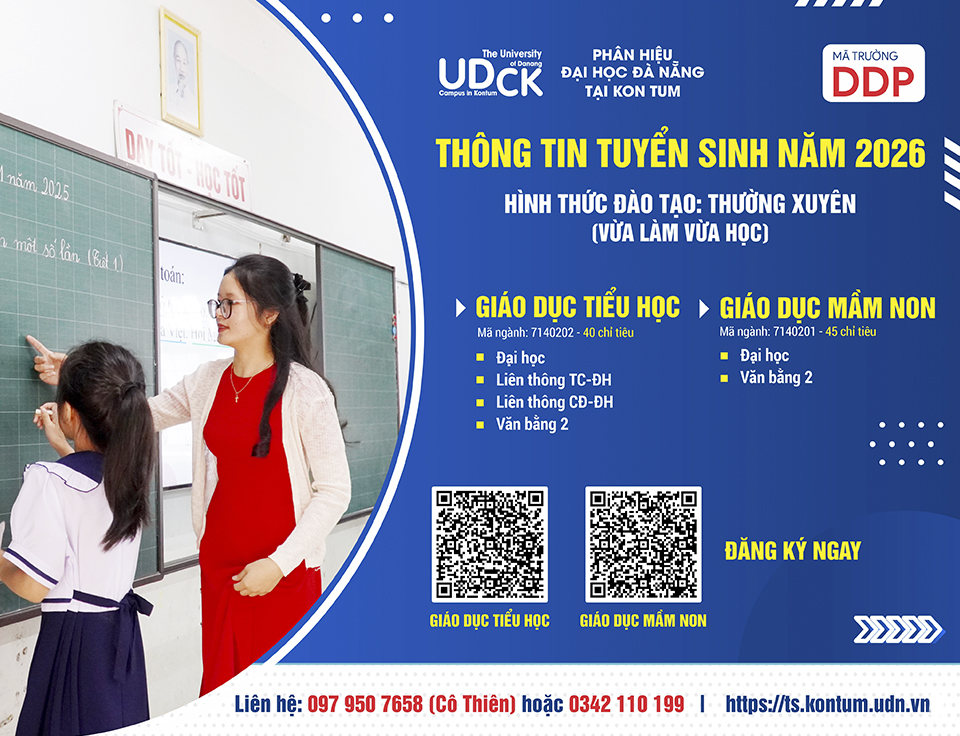 Phân hiệu ĐHĐN tại Kon Tum công bố Thông tin tuyển sinh năm 2026 - Hình thức đào tạo: Thường xuyên (Cập nhật ngày 23/04/2026)
